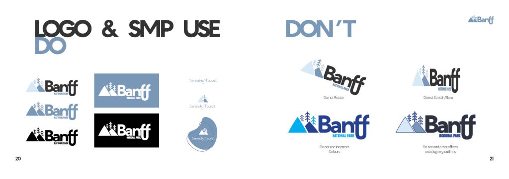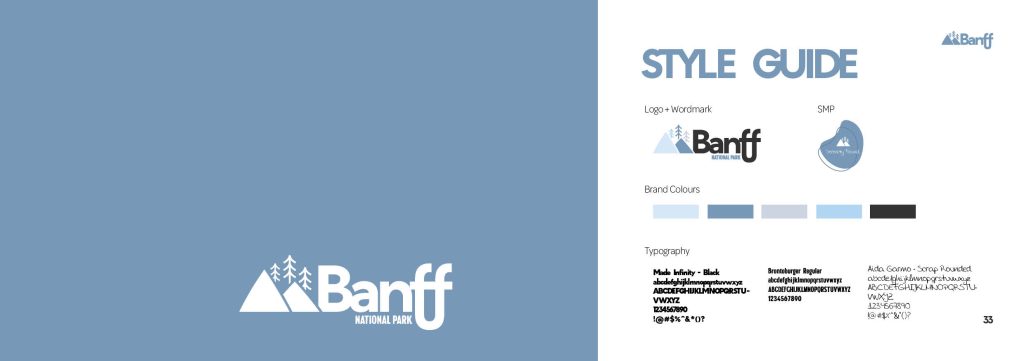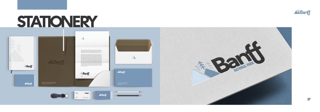 Complete rebrand for Banff National Park in Alberta, Canada, featuring a 36-page design style guide, stationery, and merchandising options. My task was to create a new brand identity for Banff National Park, uniting all attractions from Banff to Lake Louise into one cohesive brand.